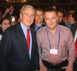 После своей речи президент США пообщался с рядом участников конференции, среди которых был и представитель России Дмитрий Шатров (директор петербургского телеканала ОТВ и пастор церкви «Миссия Благая Весть»).